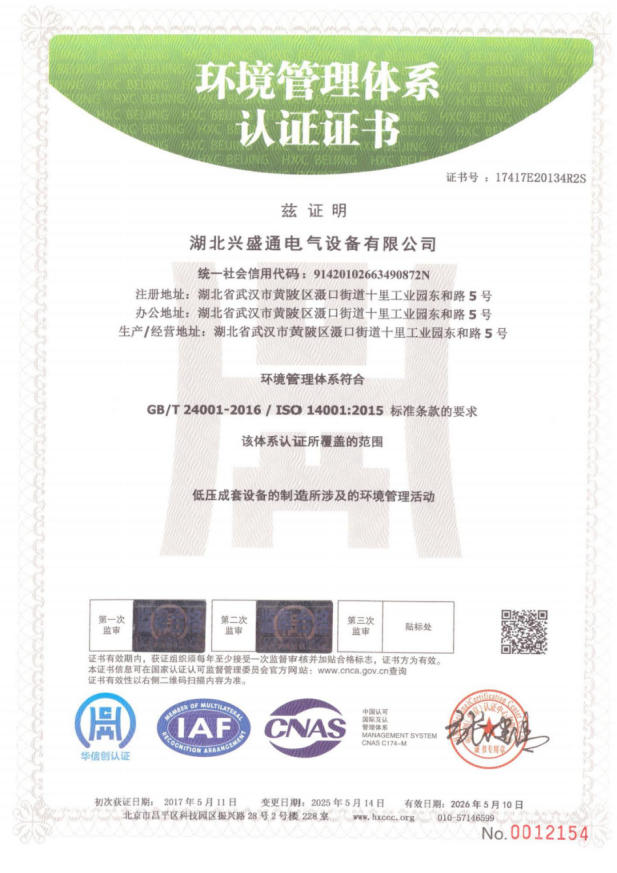 環(huán)境管理體系認(rèn)證證書
