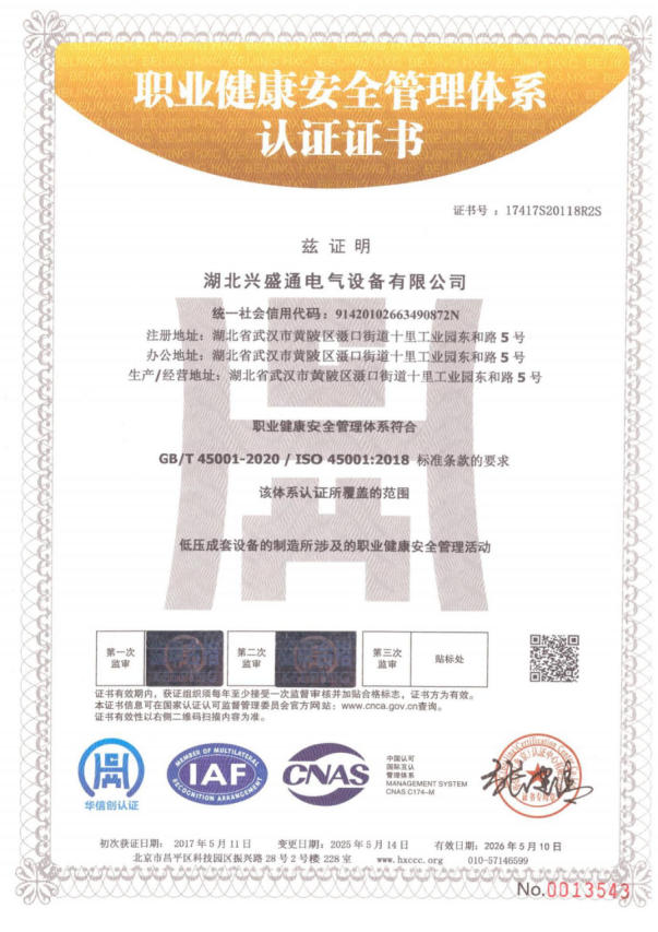 職業(yè)健康安全管理體系認(rèn)證證書