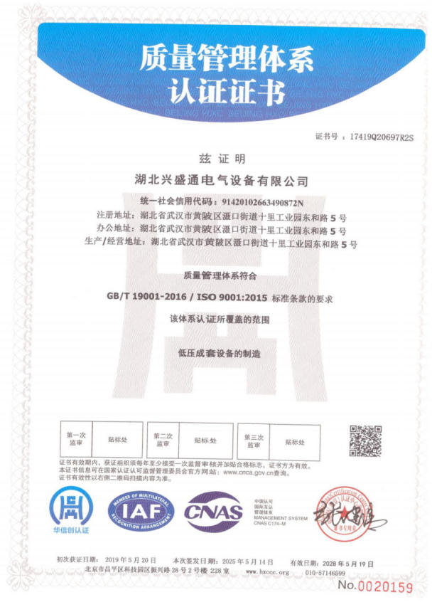 質(zhì)量管理體系認(rèn)證證書