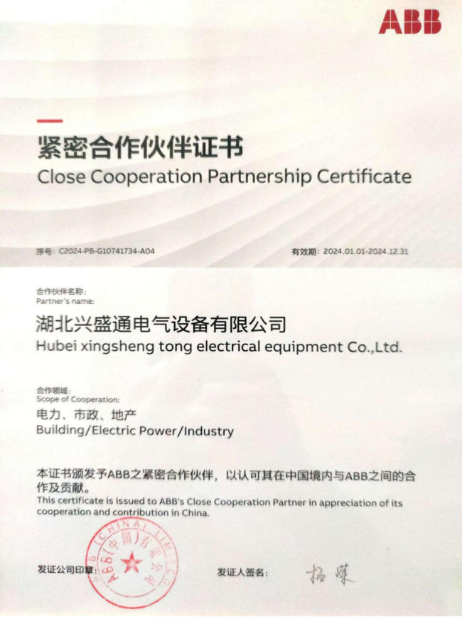 ABB緊密合作伙伴證書